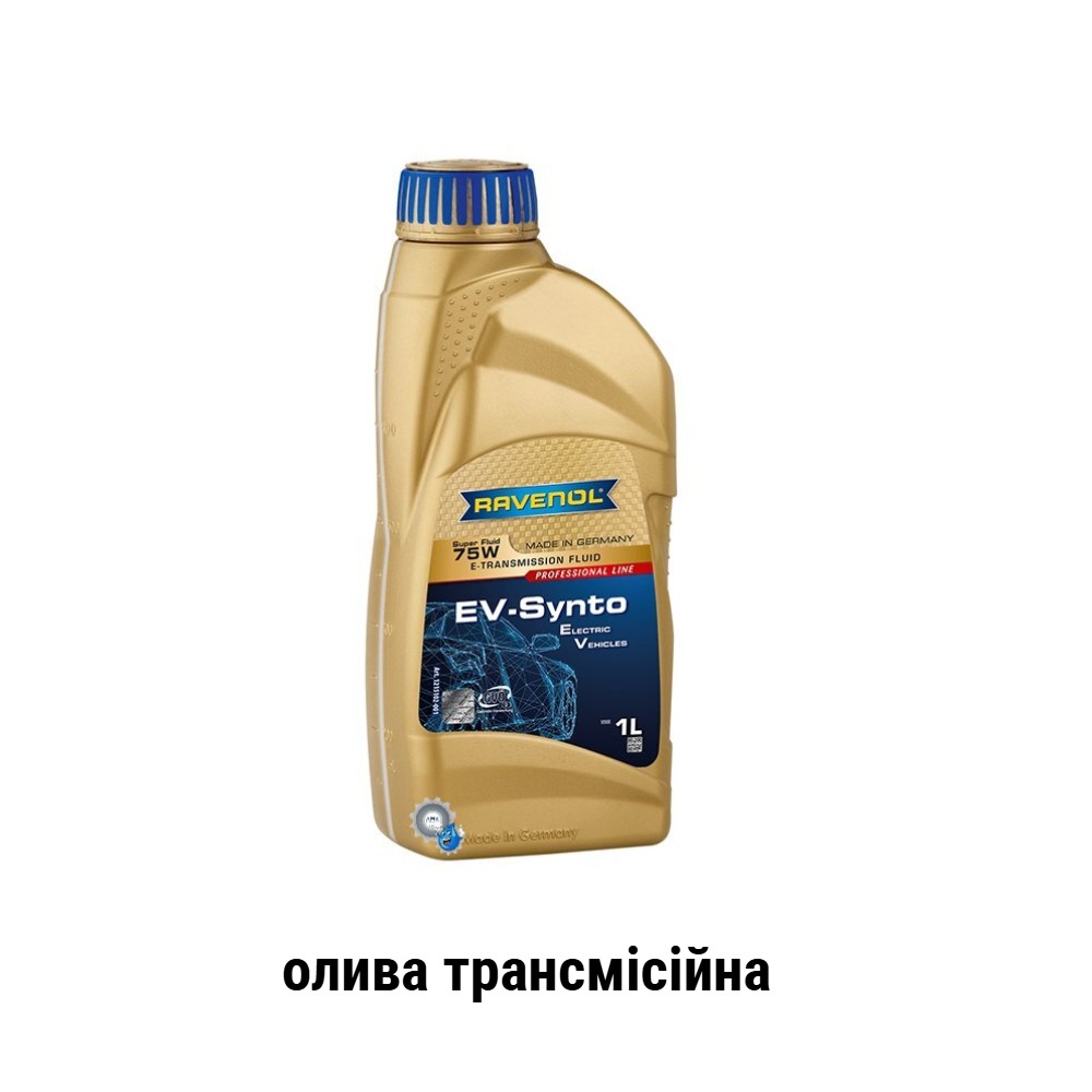 Трансмісійне масло SAE 75W E-TF RAVENOL EV-Synto Super Fluid розроблено для сучасних електромобілів на основі синтетичеих базових олив та спеціальних присадок, що забезпечують хороший електричний опір та діелектричні властивості, а унікальна формула знижує енерговитрати, захищає електричні компоненти трансмісії, мінімізує тертя та знос, забезпечуючи тривалий термін служби автомобіля.
