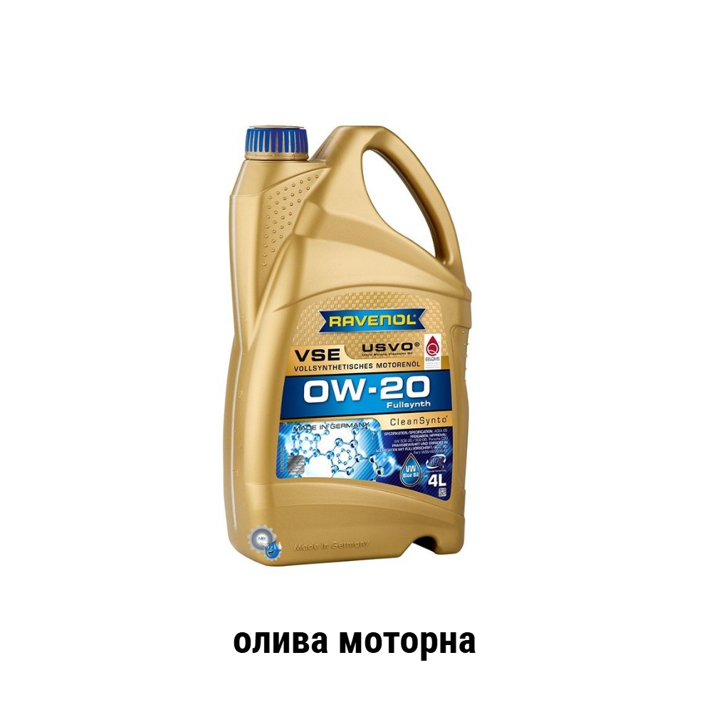 Ravenol VSE 0w-20 повністю синтетична моторна олива для сучасних бензинових, дизельних та гібридних легкових автомобілів, позашляховиків, мінівенів та мікроавтобусів, включаючи двигуни з турбонаддувом та з безпосереднім упорскуванням палива.