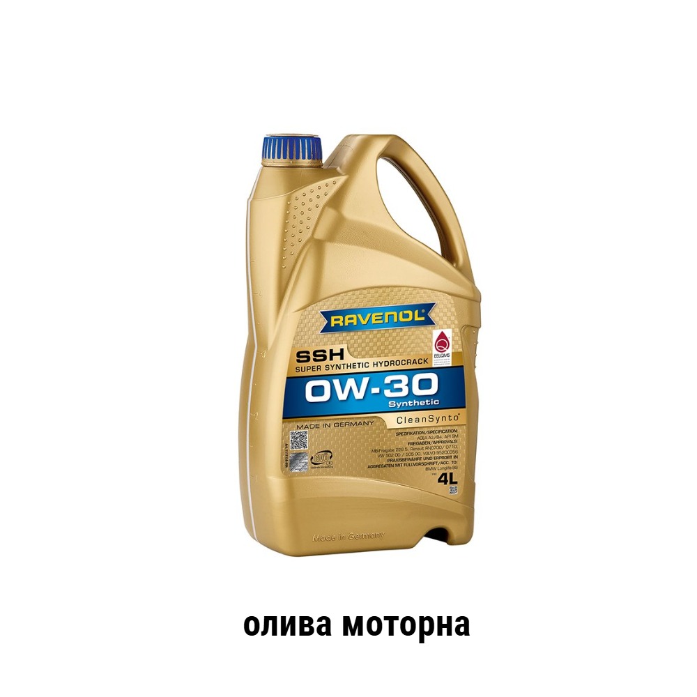 RAVENOL Super Synthetic Hydrocrack SSH SAE 0W-30-cинтетическое легкотекучее масло для бензиновых, дизельных и турбодизельных двигателей (а также с прямым впрыском топлива) легковых автомобилей, микроавтобусов и джипов. Удлиненные интервалы замены согласно требованиям автопроизводителей.